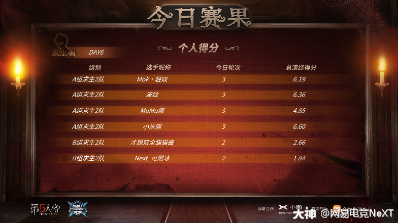 赛事通报 第五人格 冬季赛 第五人格 篝火重燃 精英赛大师直邀挑战赛 小组 来自大神第五人格圈子 网易电竞next